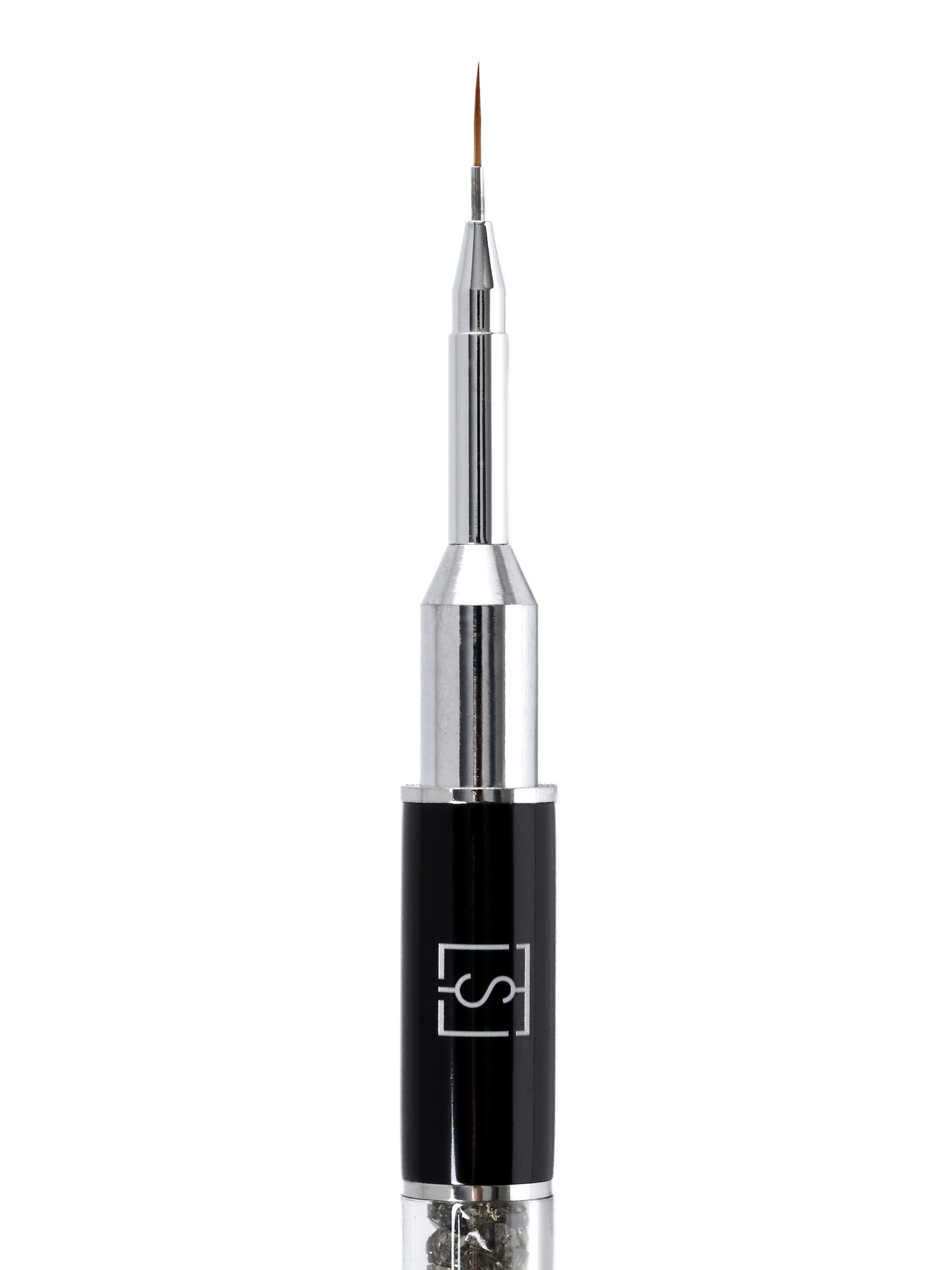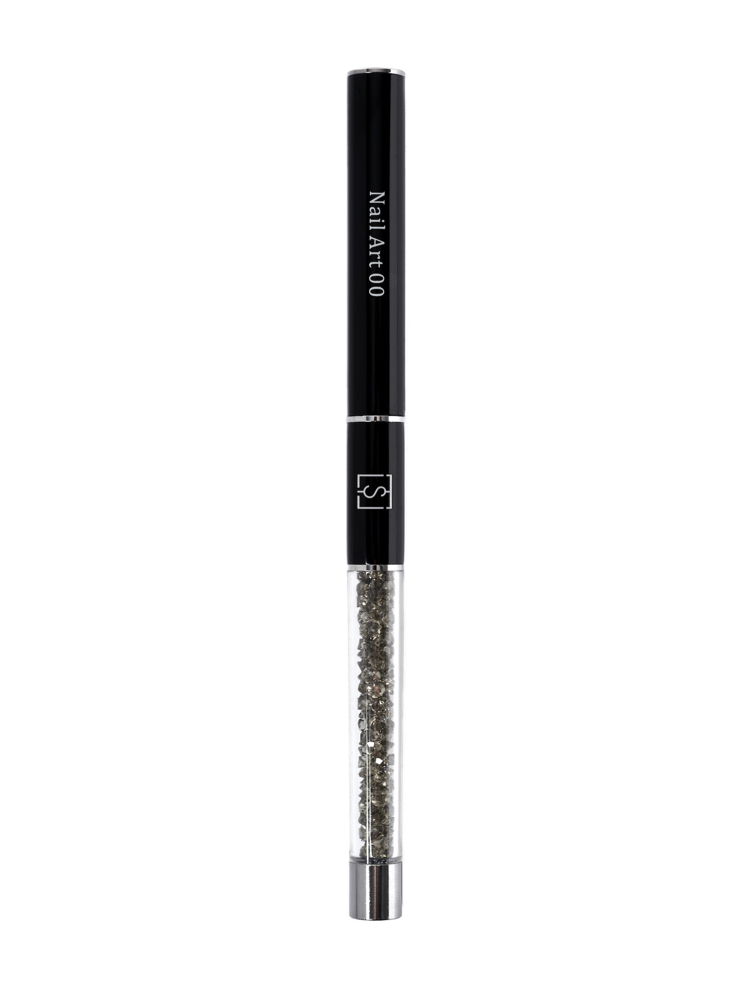 SYNTHETISCH NAILART PENSEEL, FINELINER MET MOOIE STEEL GEVULD MET DONKERE KRISTALLEN. LIGT GOED IN DE HAND EN HEEFT CHIQUE UITSTRALING. HEEFT EEN DOP WAT ERVOOR ZORGT DAT JOUW PENSEEL LANGER MEEGAAT.